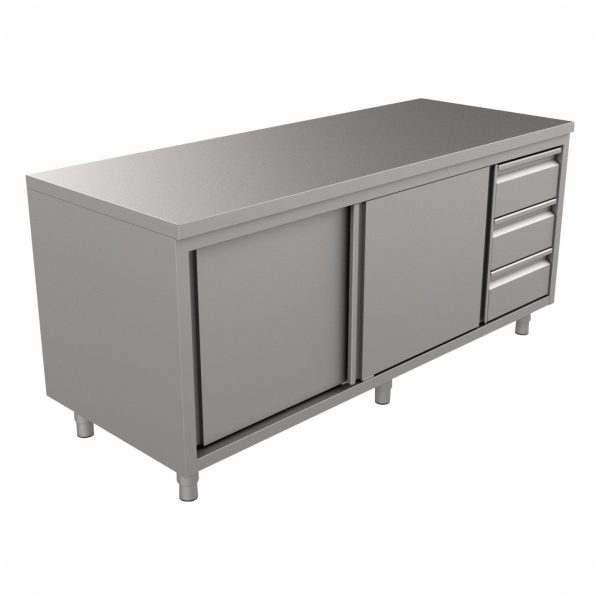 Ova verzija pulta ima 3 ladice i 2 kliznih vrata.