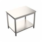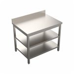 Visokokvalitetni radni stol izrađen od AISI Inox nehrđajučeg čelika ima čvrstu radnu ploču od nehrđajućeg čelika koja je ojačana s dva mosta i ima nosivost od 150-200 kg.