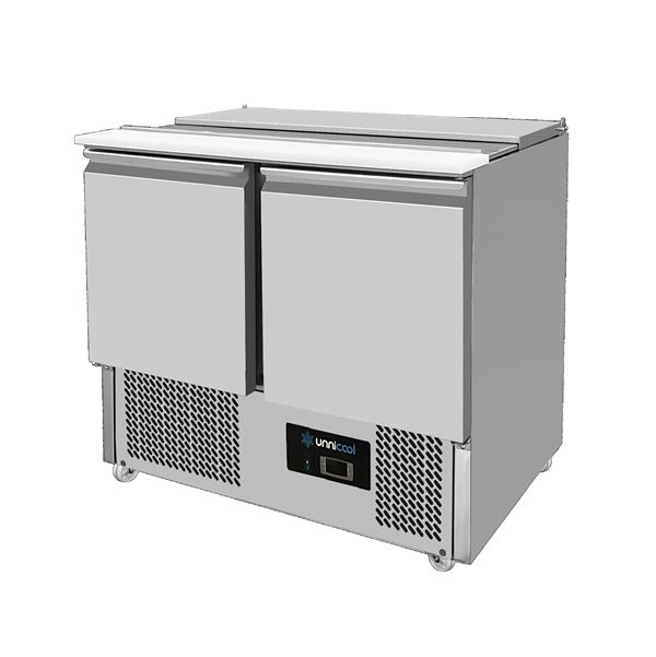 Ova prekrasna rashlađena salatna vitrina dolazi s dvoja vrata i praktičnom daskom za rezanje.